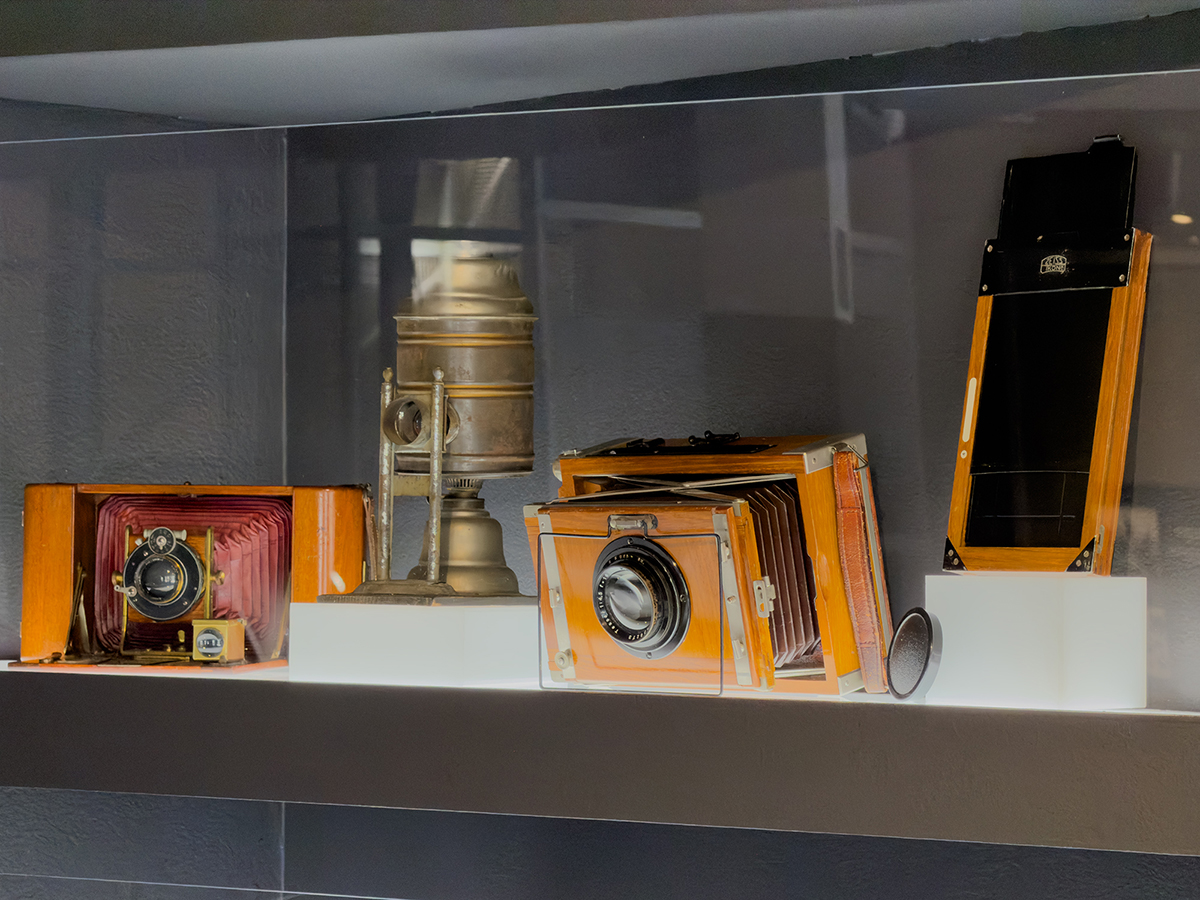 The California Museum of Photography Technology Collection comprises more than ten thousand cameras, viewing devices, and other photographic apparatus. It is the second largest camera collection in the United States. The cameras date from photography’s dawn in the 1840s: daguerreotype cameras, representing one of the first types of photographic processes (1839–1850s), hand-built wet-collodion cameras (1860–1870), and many other rarities. Stereoscopic cameras are especially well-represented, as is a wide array of pristine Canon cameras. Additionally, the collection boasts several encyclopedic holdings, including comprehensive collections of Kodak Brownies (1900–1960), Zeiss Ikon cameras (circa 1902–1973), and Polaroid cameras (1940–1980).